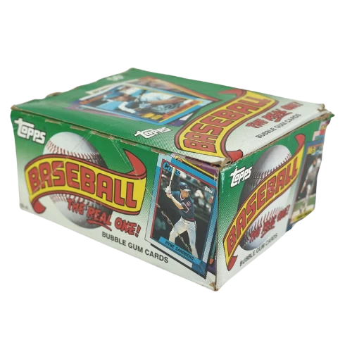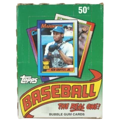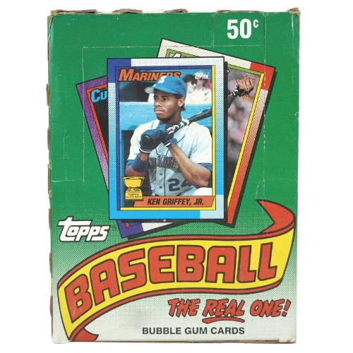This 1990 Topps baseball wax box contains 36 factory sealed, unopened wax packs. Each wax pack holds 15 cards for a total of 540 cards per box.