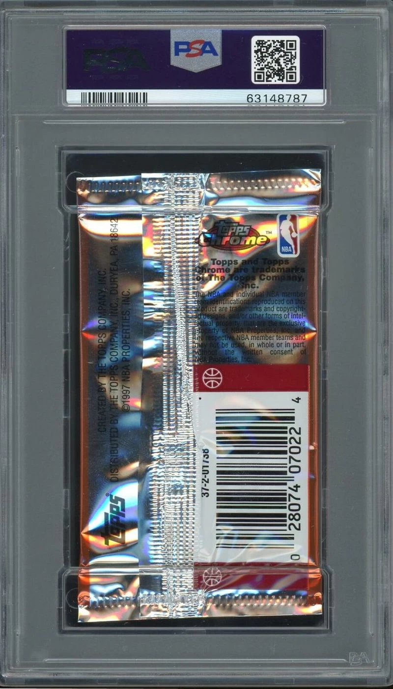 A one of a kind gem that is a must have for any serious card collector! PSA graded gem mint unopened 1996/97 Topps Chrome basketball foil pack.