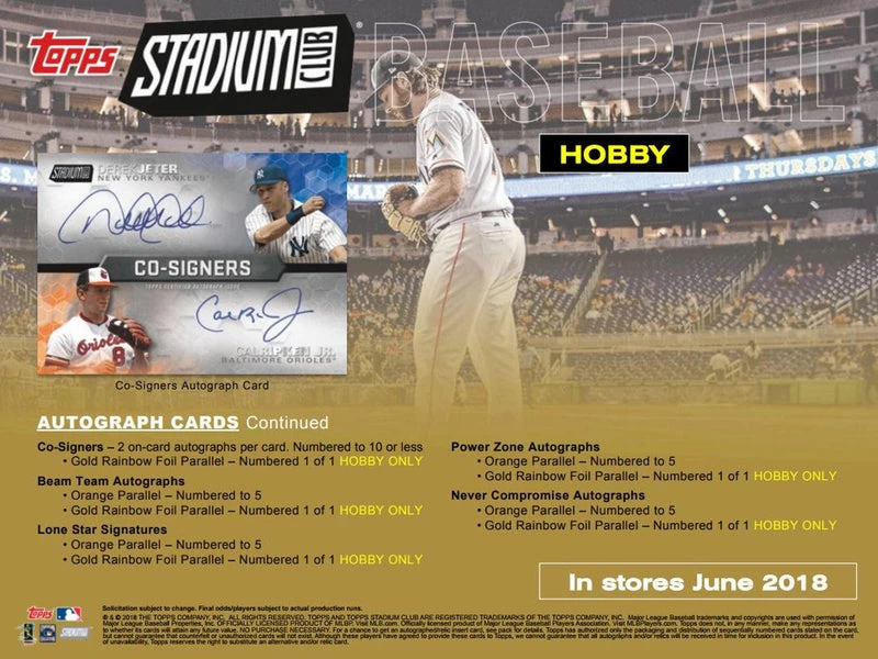 Topps Stadium Club Baseball returns in 2018 showcasing unique and exciting imagery of modern-day stars, rookies, and legends.
