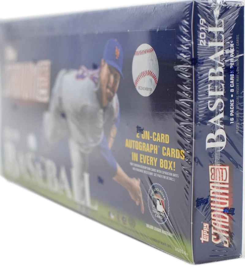 Each Hobby Box of 2019 Stadium Club Baseball contains two autograph cards, one base Chrome Parallel, one Beam Team insert card, and one oversized base variation box topper!