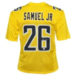 You are purchasing an Asante Samuel Jr signed Los Angeles Chargers Yellow NFL football jersey.