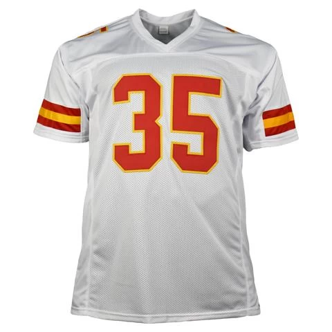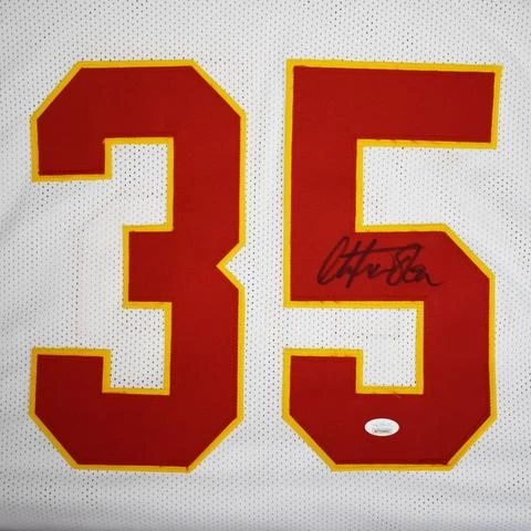 You are purchasing a Christian Okoye hand signed Kansas City Chiefs White NFL football jersey.