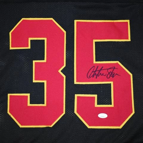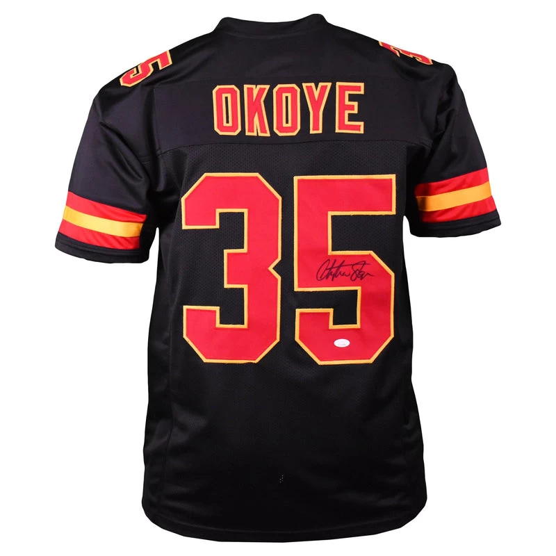 You are purchasing a Christian Okoye hand signed Kansas City Chiefs Black NFL football jersey.