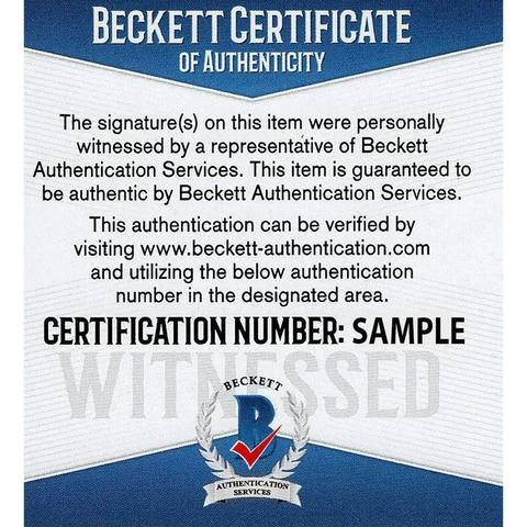 This product has been authenticated by Beckett. The product includes a tamper-evident hologram and matching certificate of authenticity. The authenticity of the signature is guaranteed for life.