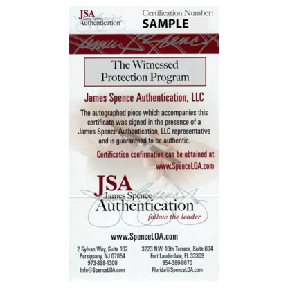 This product has been authenticated by JSA. The product includes a tamper-evident hologram and matching certificate of authenticity. The authenticity of the signature is guaranteed for life.