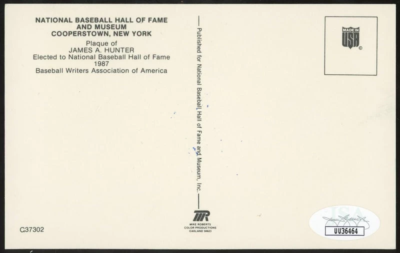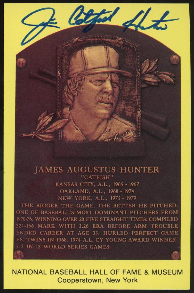 Jim Catfish Hunter Baseball HOF Plaque Postcard JSA