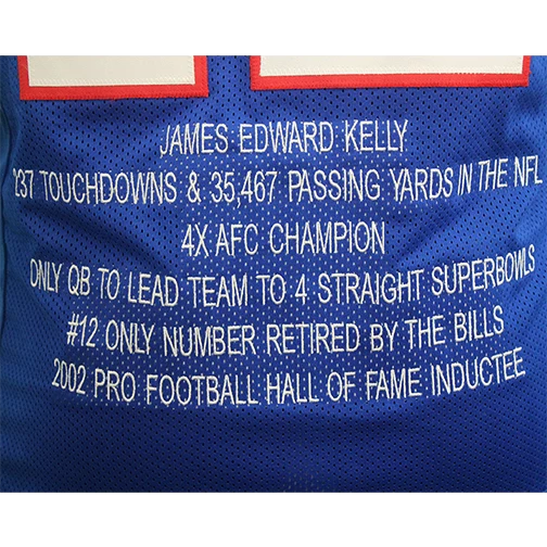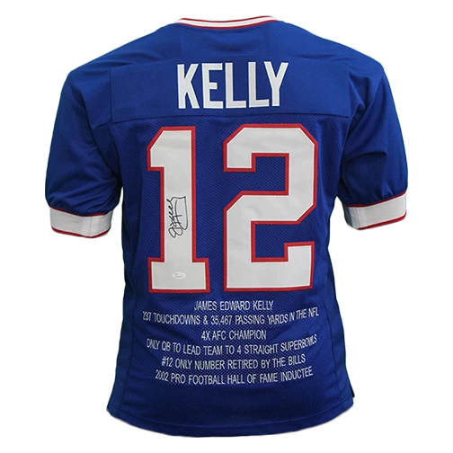 You are purchasing a Jim Kelly hand signed Buffalo Bills Football NFL STAT football jersey.