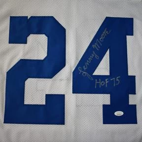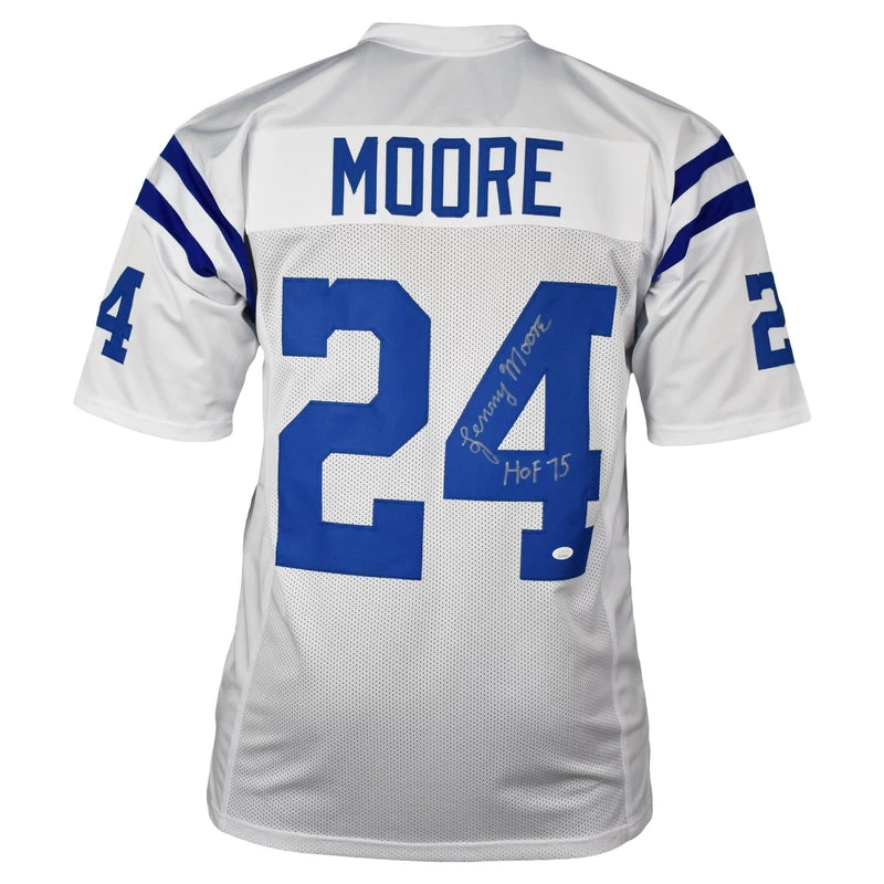 You are purchasing a Lenny Moore hand signed Baltimore Colts NFL football jersey.