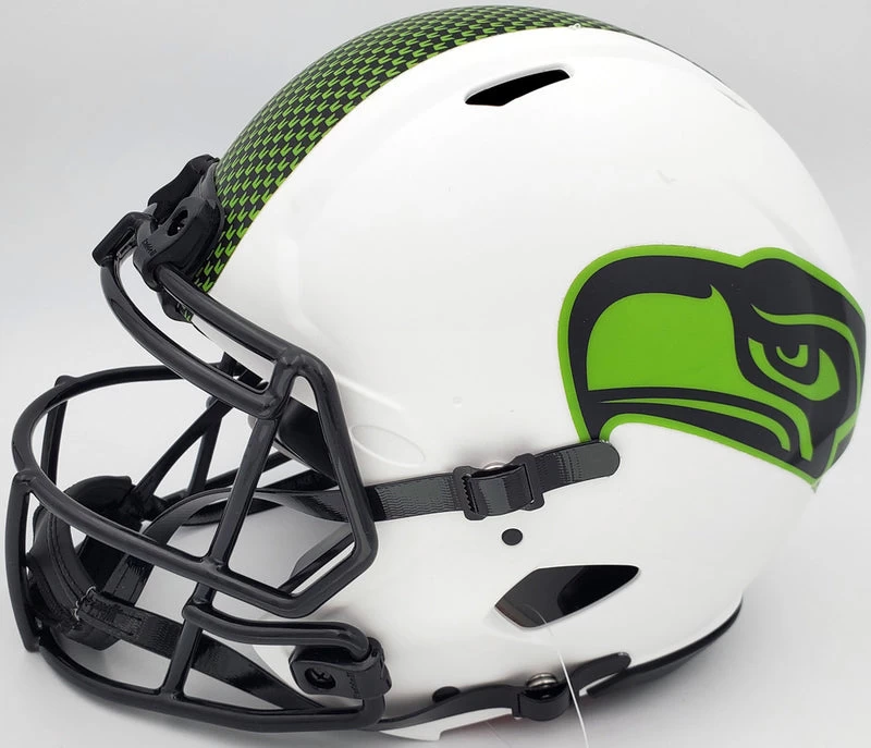 You are purchasing a Russell Wilson hand signed official Seattle Seahawks white lunar eclipse full sized NFL helmet.